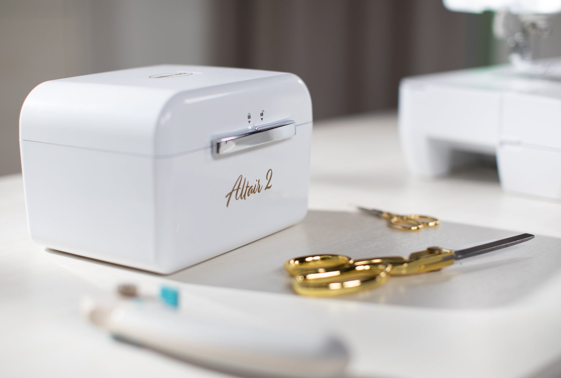 Working as both an embroidery and a sewing machine, Altair 2 is packed with power and technology allowing your creative side to take control. With IQ Technology®, you can seamlessly transfer images to your machine from your smart device using the IQ Intuition Positioning® App for perfect design placement in the hoop or design creation in IQ Designer.